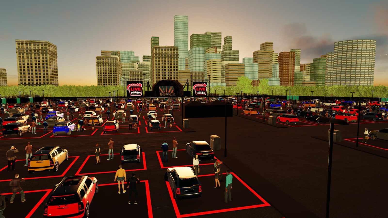 Audience members would have been able to stand outside their vehicles in allocated spaces, or sit in their fold-out chairs while enjoying live shows.