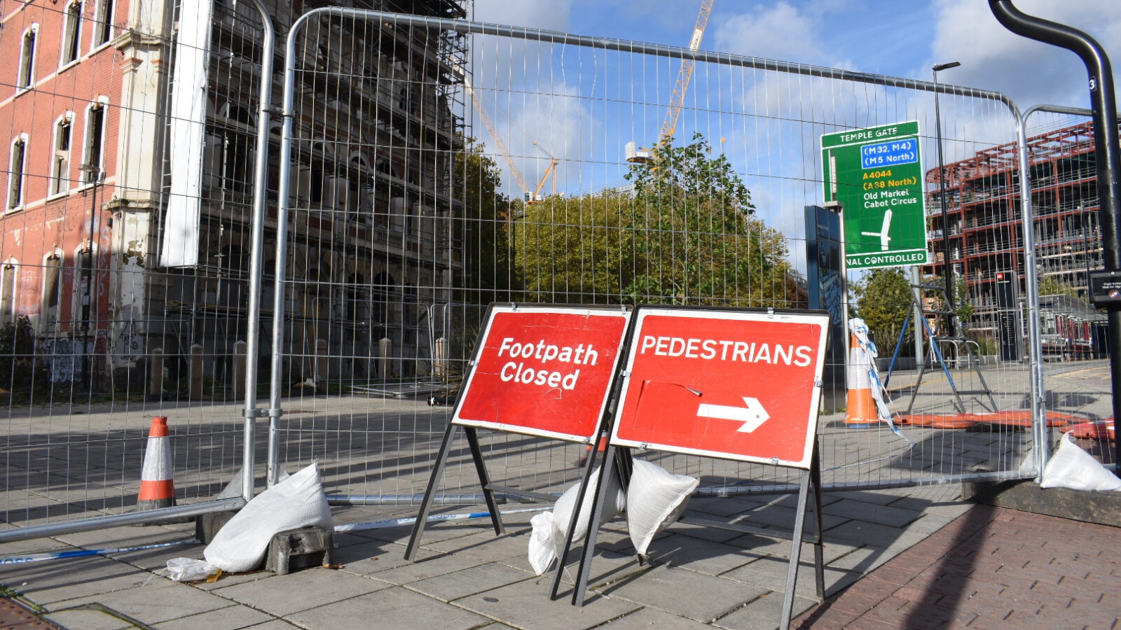 After the fire, Bristol City Council blocked off a busy commuting route around the derelict building on Temple Gate, used by many people to walk or cycle into the city centre.