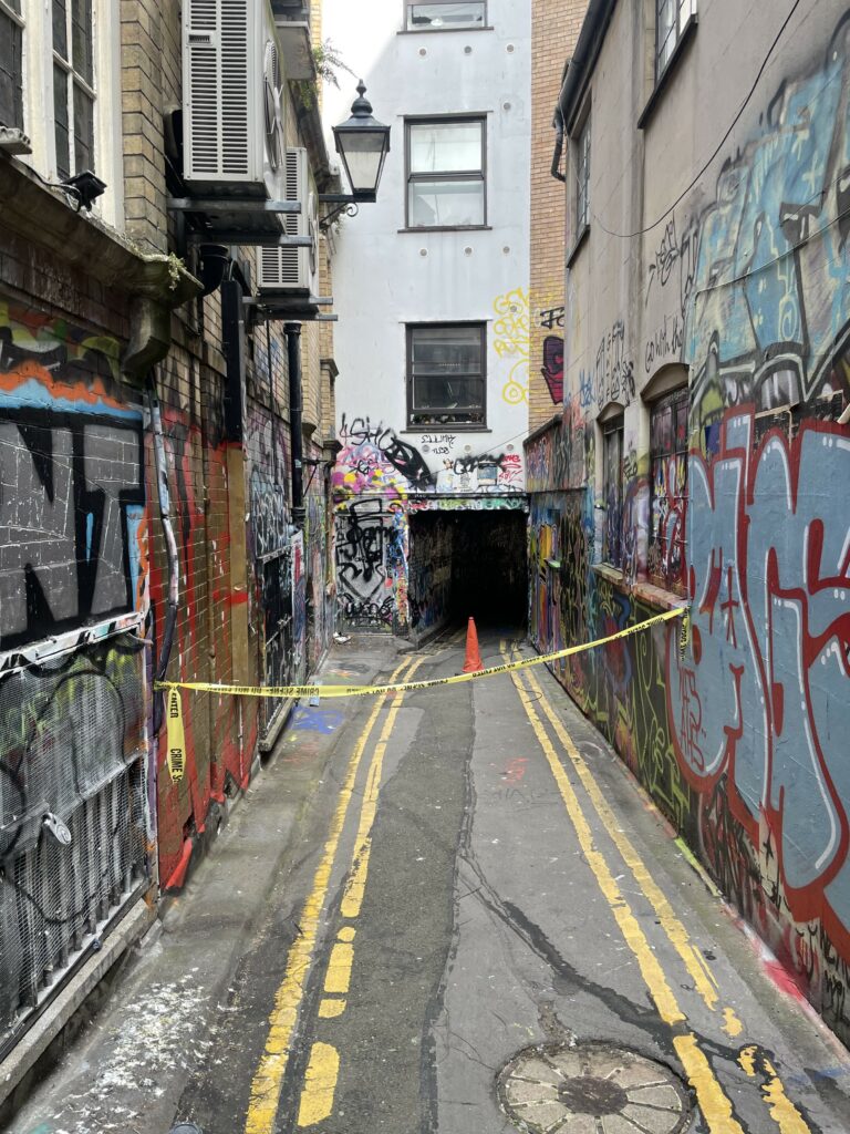 A section of Leonard Lane near Small Street is also within the police cordon – photo: Martin Booth