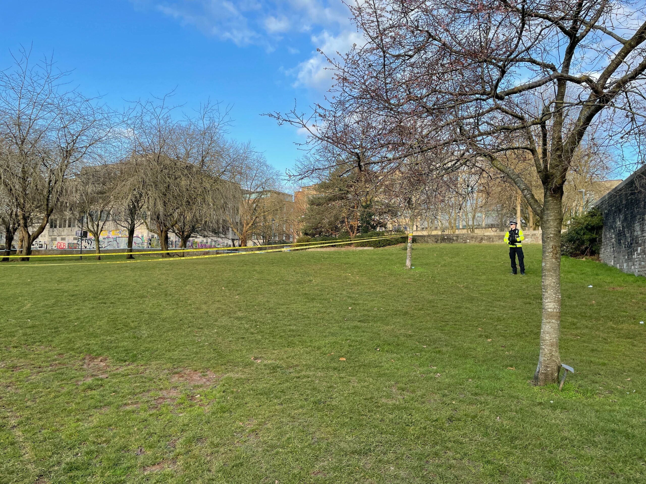 A police cordon remains in place in Castle Park on Wednesday morning – photo: Meg Houghton Gilmour