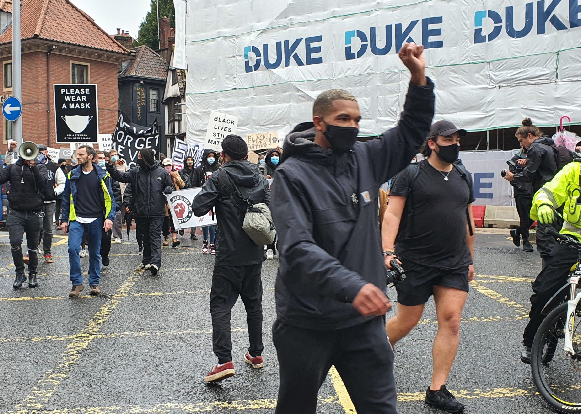It marked the middle of a Black Lives Matter march that saw people turn out in the soggy weather to walk once more through the streets of Bristol to call for systemic change.
