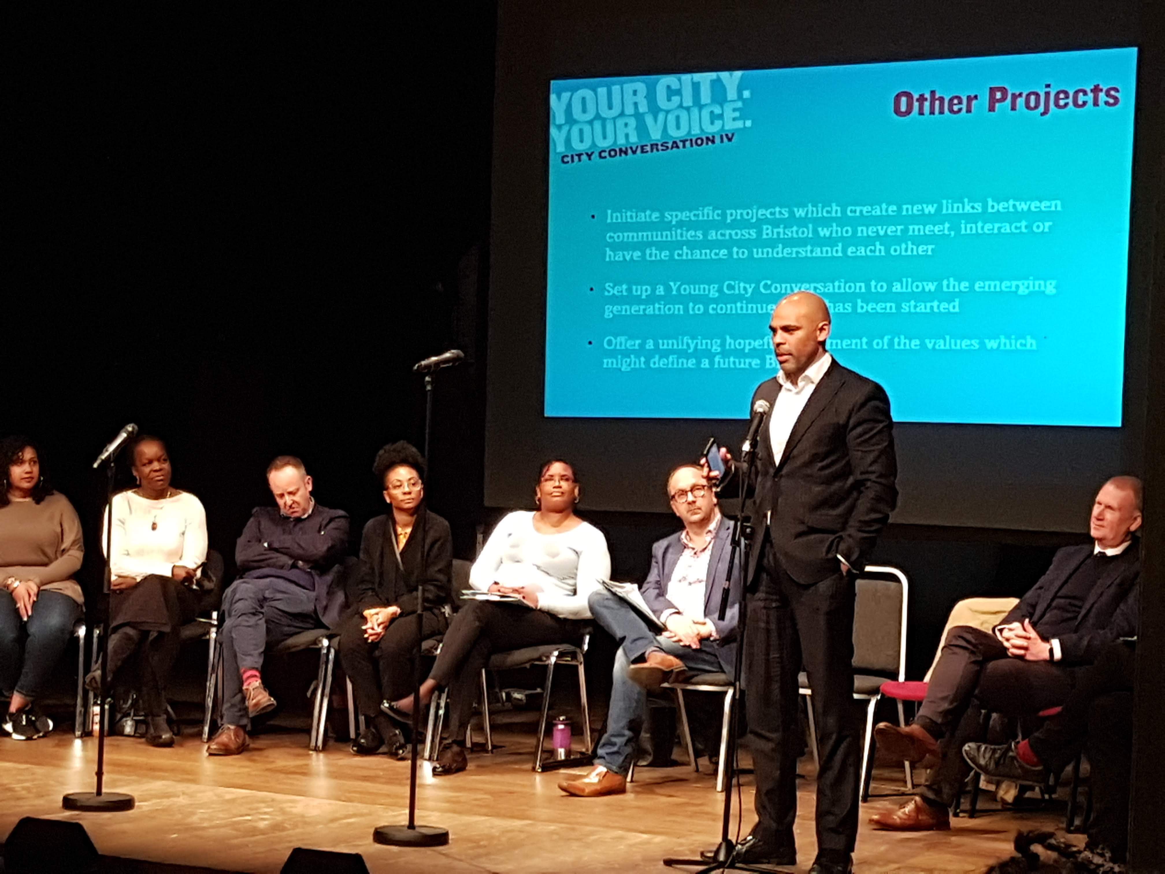Rees speaks about the challenge of tackling racism at a recent City Conversations event at Bristol Old Vic