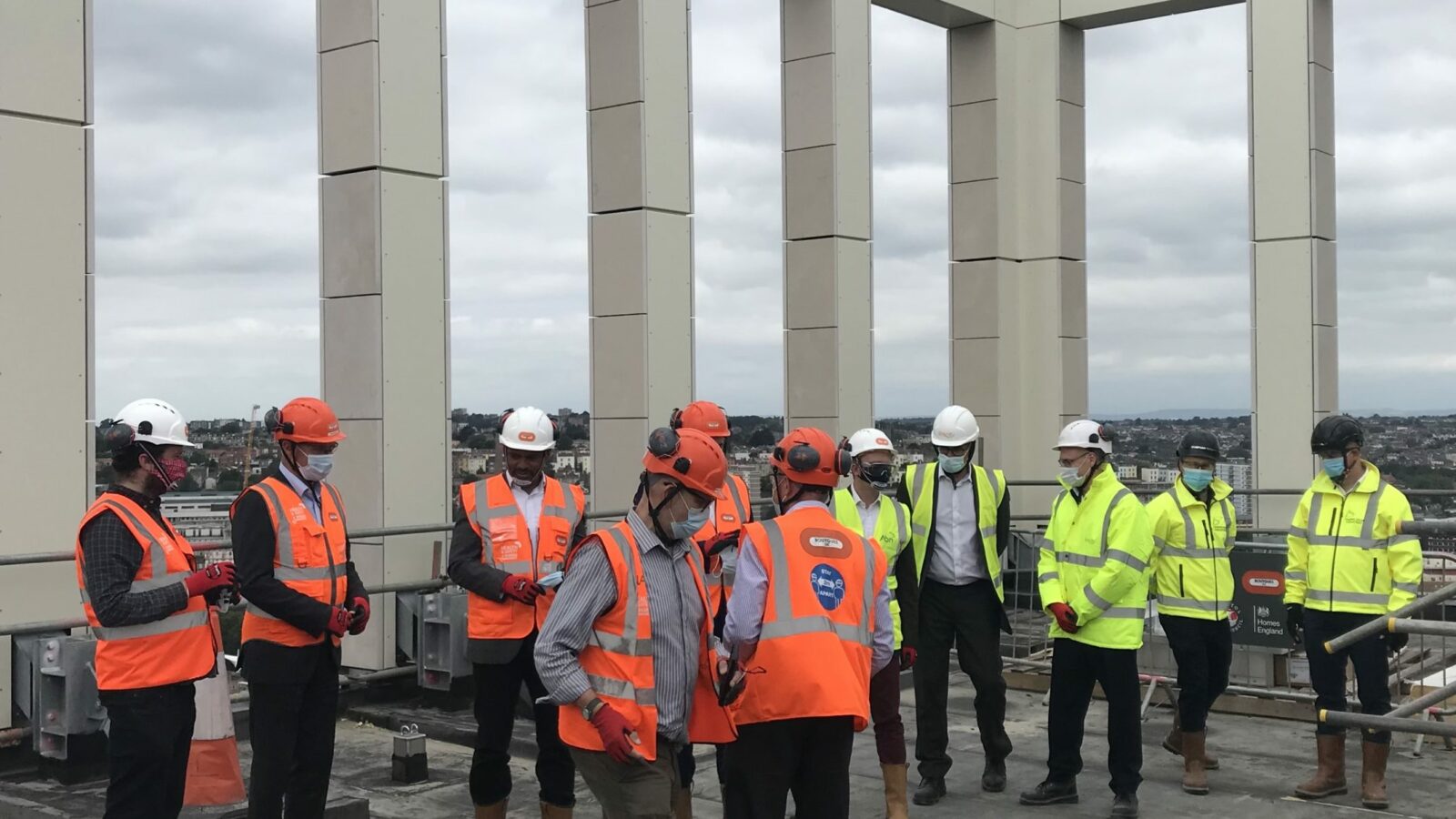 Men in hi-vis gather on top of Bristol’s tallest residential tower