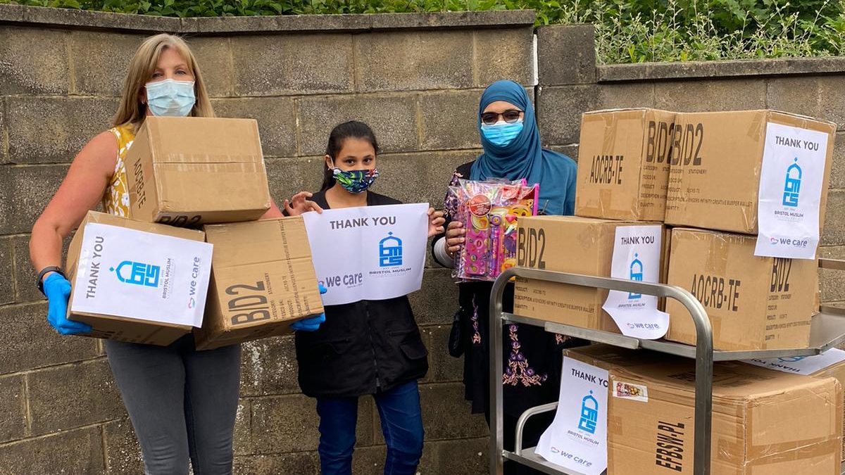 Main photo of volunteers delivering supply packages curing lockdown – courtesy of Samina Iqbal