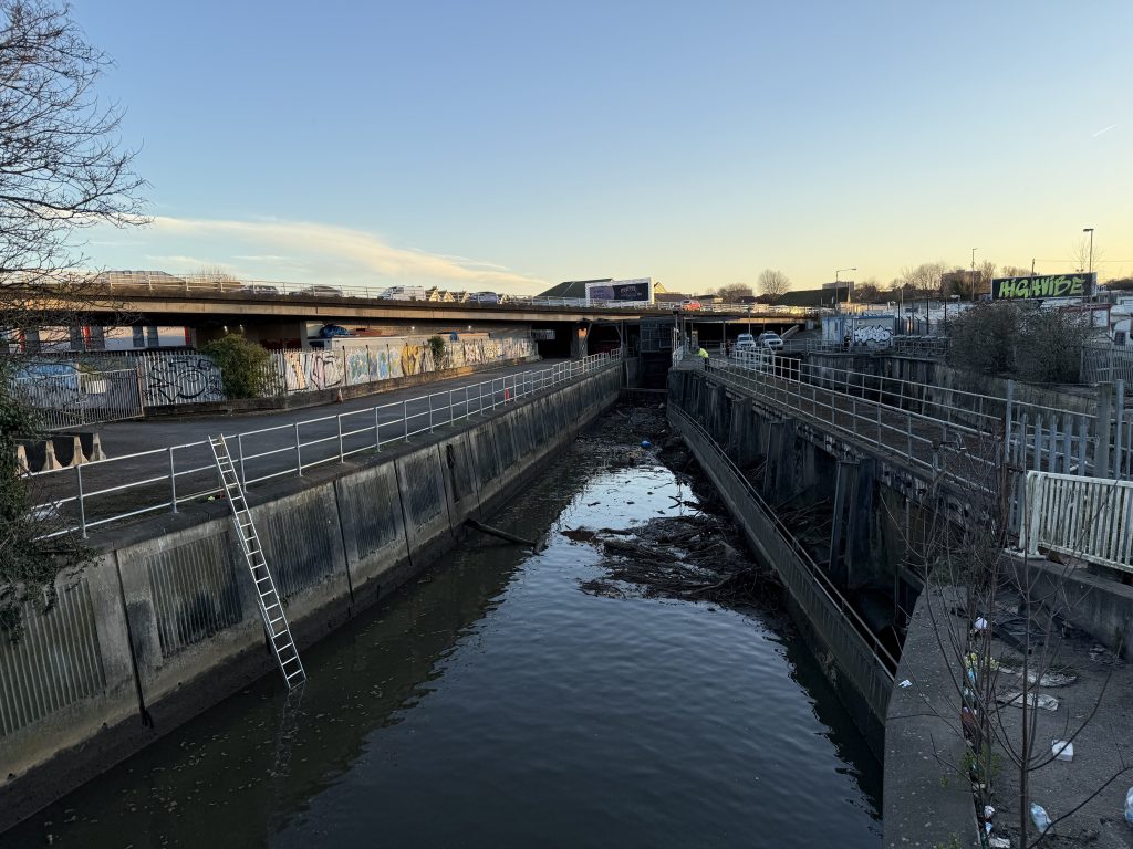 Police underwater search unit teams have been looking in the River Frome near Ikea – photo: Martin Booth