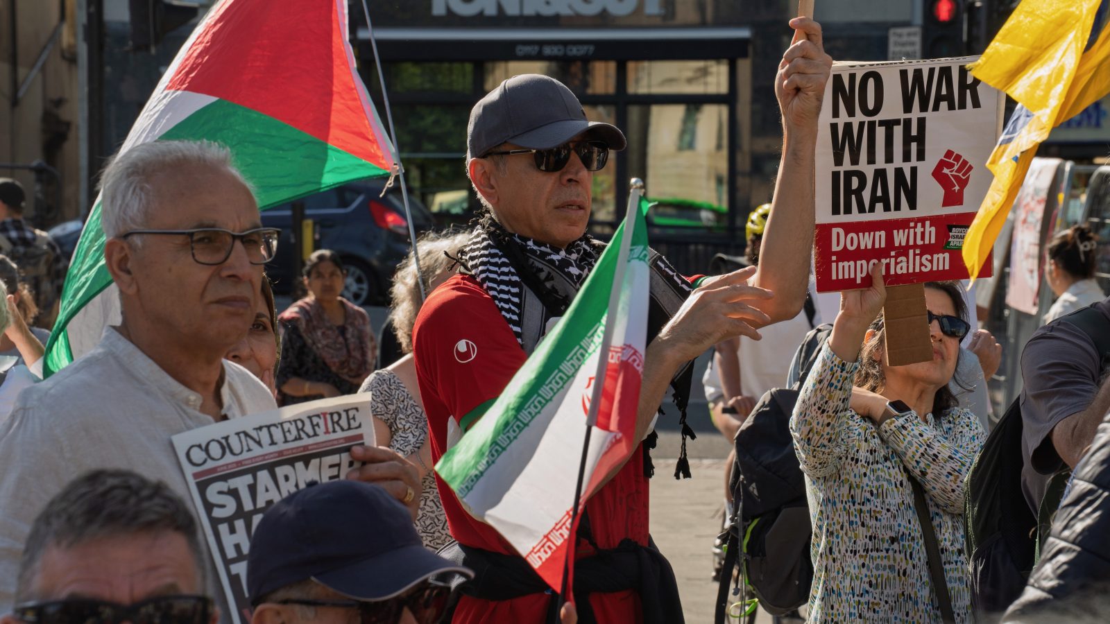 “Turn rage into resistance”, one speaker said at an “emergency rally” that saw people of different faiths, origins and cultures unite to call for peace in Iran and Palestine.