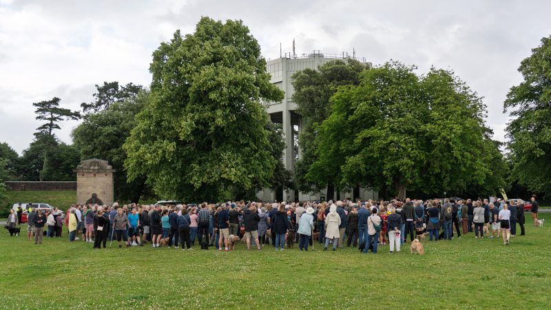 The group of people gathered opposite the Downs Water Tower before listening to a speech from founder of the Protect the Downs group, Tony Nelson.
