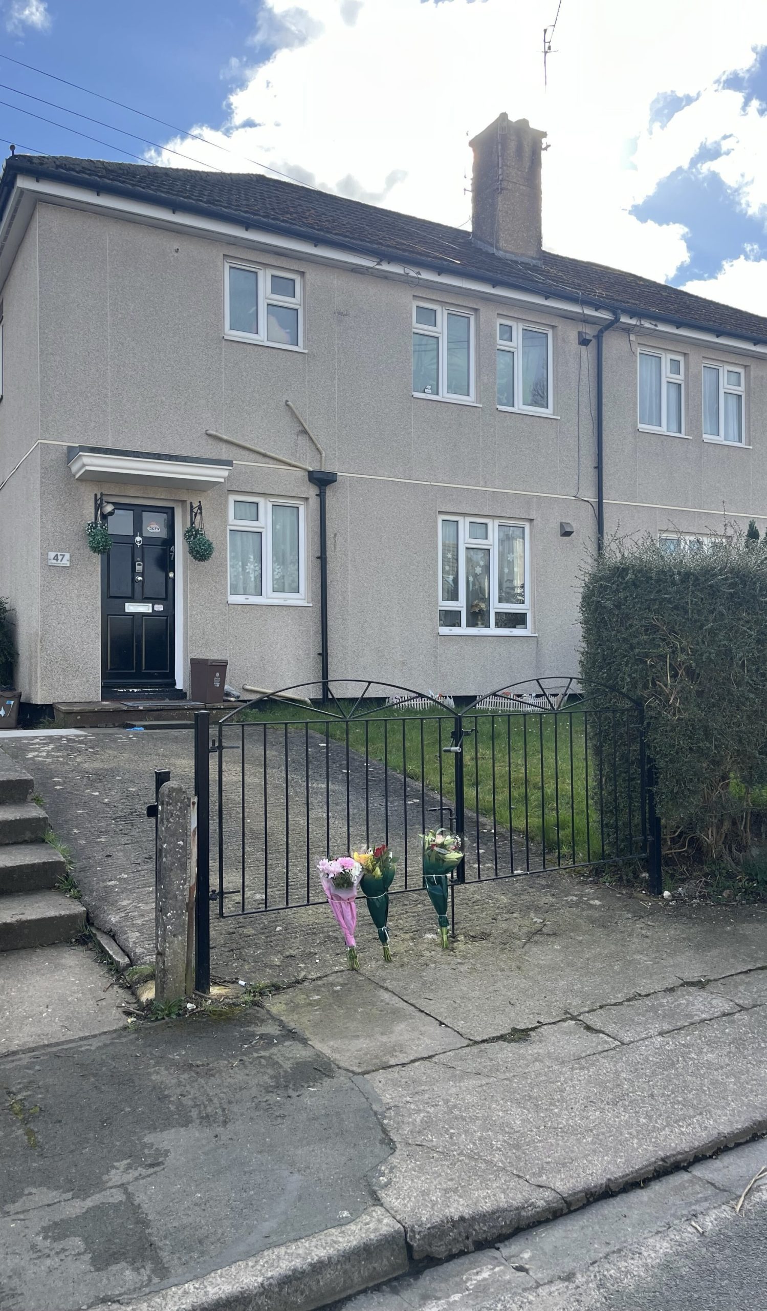 Flowers have been left outside the house on Cobhorn Drive in Withywood where Morgan Dorsett died – photo: Alexandra Hill