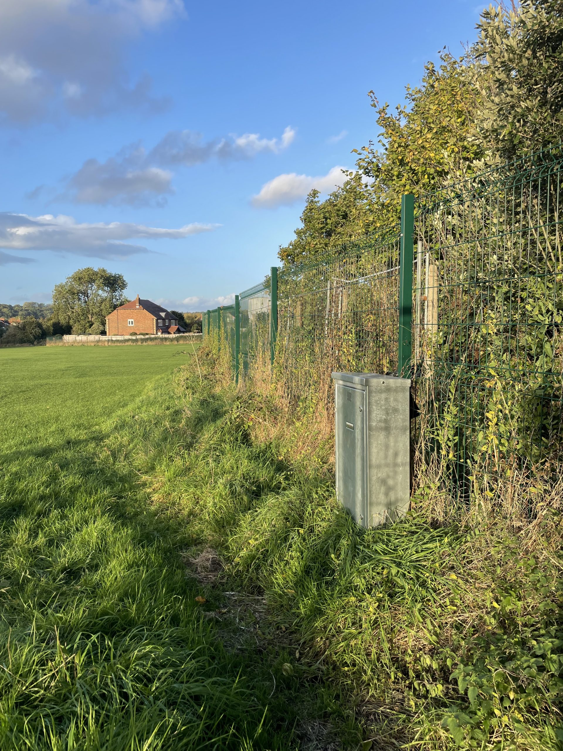 A pair of tiny CCTV cameras are hidden within a metal junction box close to an entrance to Stoke Lodge playing fields, land leased to Cotham School by Bristol City Council and which since 2019 has been surrounded by a six-foot metal fence.
