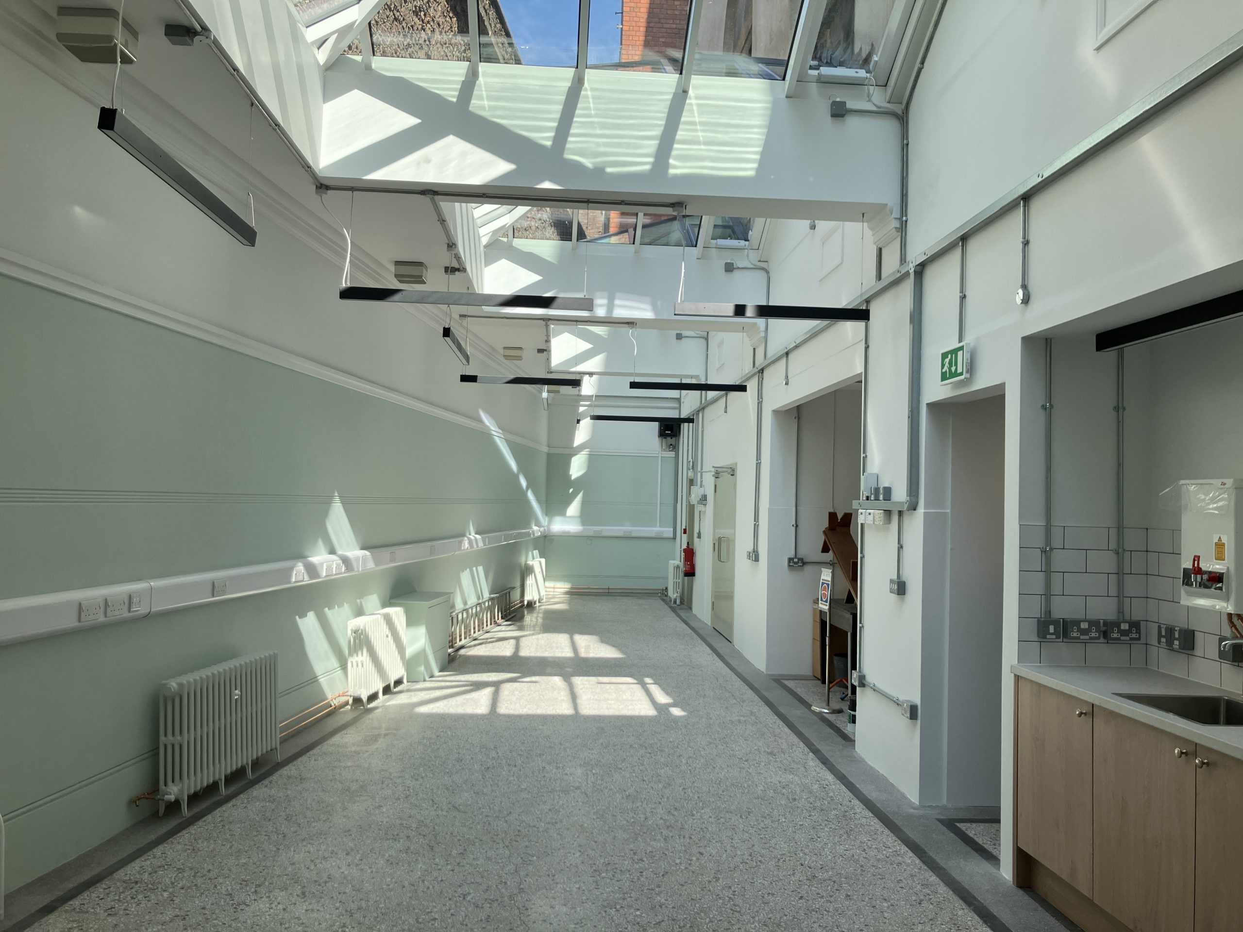 A key focus of the project was enhancing energy efficiency, with new double-glazed windows and lantern lights significantly improving thermal performance across the site.