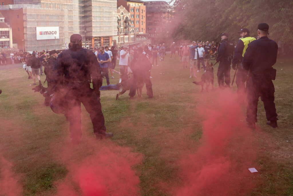 Police with dogs as flares were set off in Castle Park – photo: Rob Browne