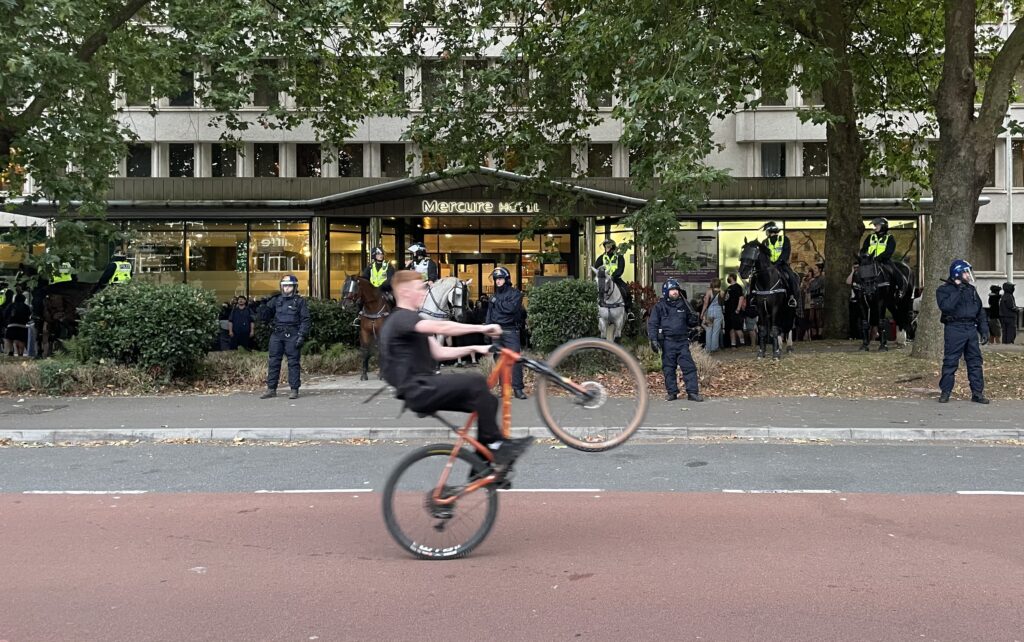 Extra police had come to Bristol from across the South West in a mutual aid operation but only six officers on bicycles and two police liaison officers were at the hotel on Redcliff Street housing asylum seekers as anti-immigration protesters arrived.
