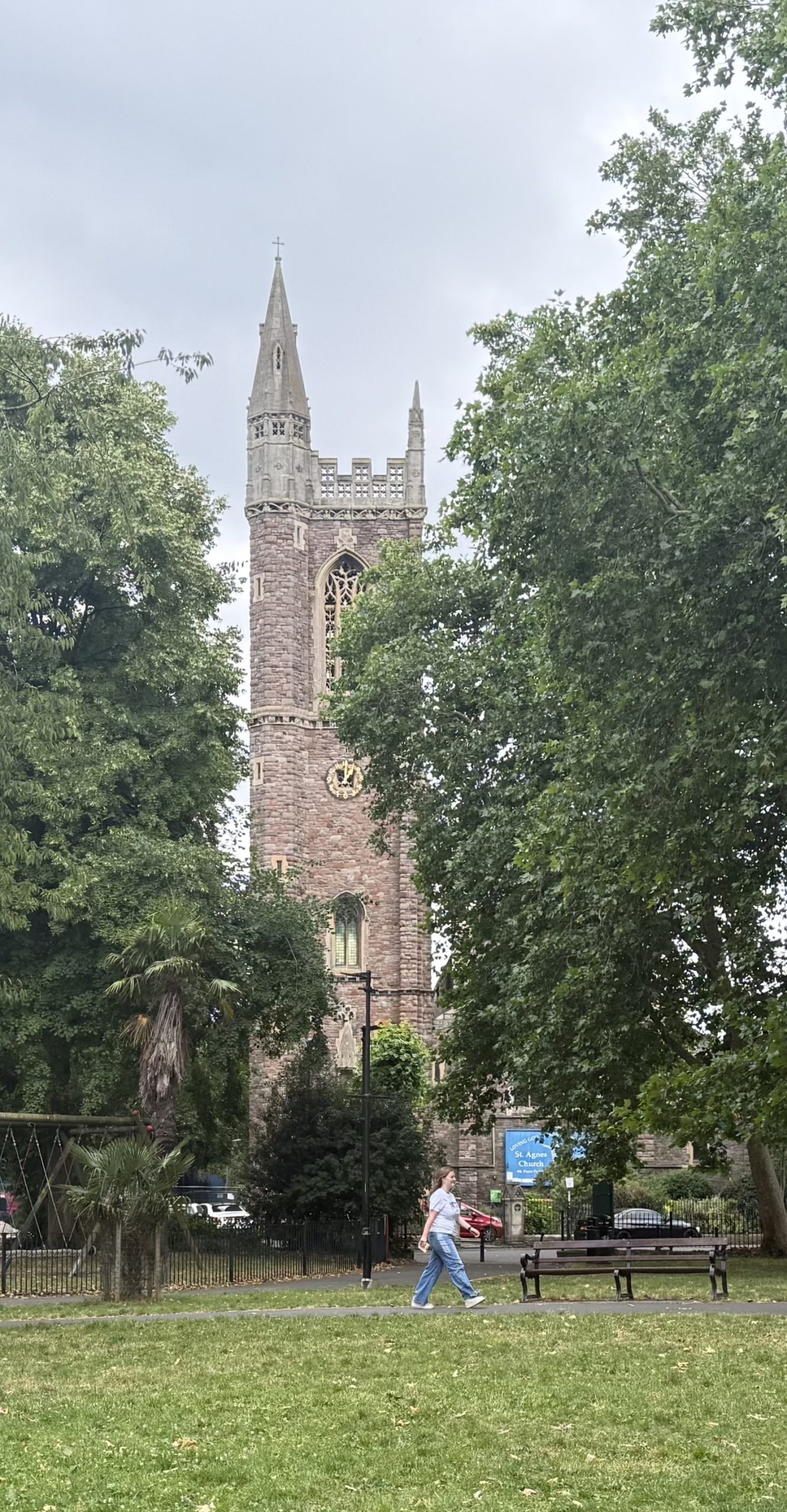 The tower of St Agnes Church is a well-known landmark next to the M32 on the way into Bristol.