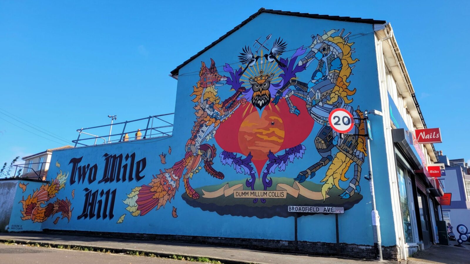 A collaboration by street artists Andy Council and Acerone, the piece on Broadfield Avenue and Waters Road has been painted to celebrate the strength of community in the neighbourhood on the edge of Kingswood.
