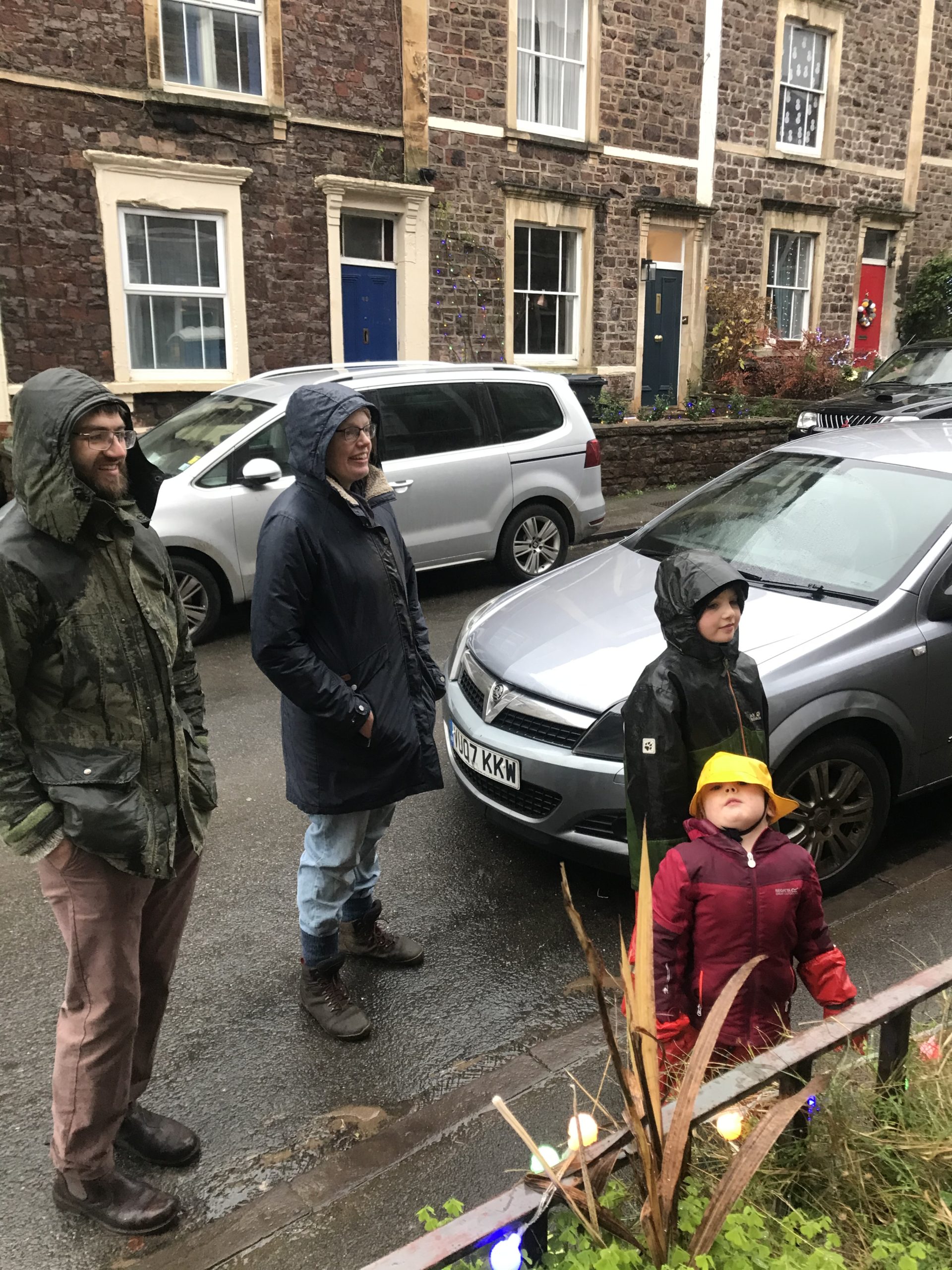 Bellevue Crescent is a very narrow dead-end road, so anyone wanting to come and see the advent windows and lights is strongly advised to come on foot, with Bristol24/7’s visit to the road coinciding with the Massie family: mum Hazel and dad Alex, and children Iris, eight, and Quinn, three, walking from their own home in Cliftonwood.