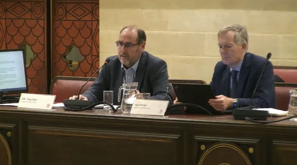 Council leader Tony Dyer (left) confirmed how much the new chief executive of the Council will be paid when he joins in January – photo: Bristol City Council/YouTube