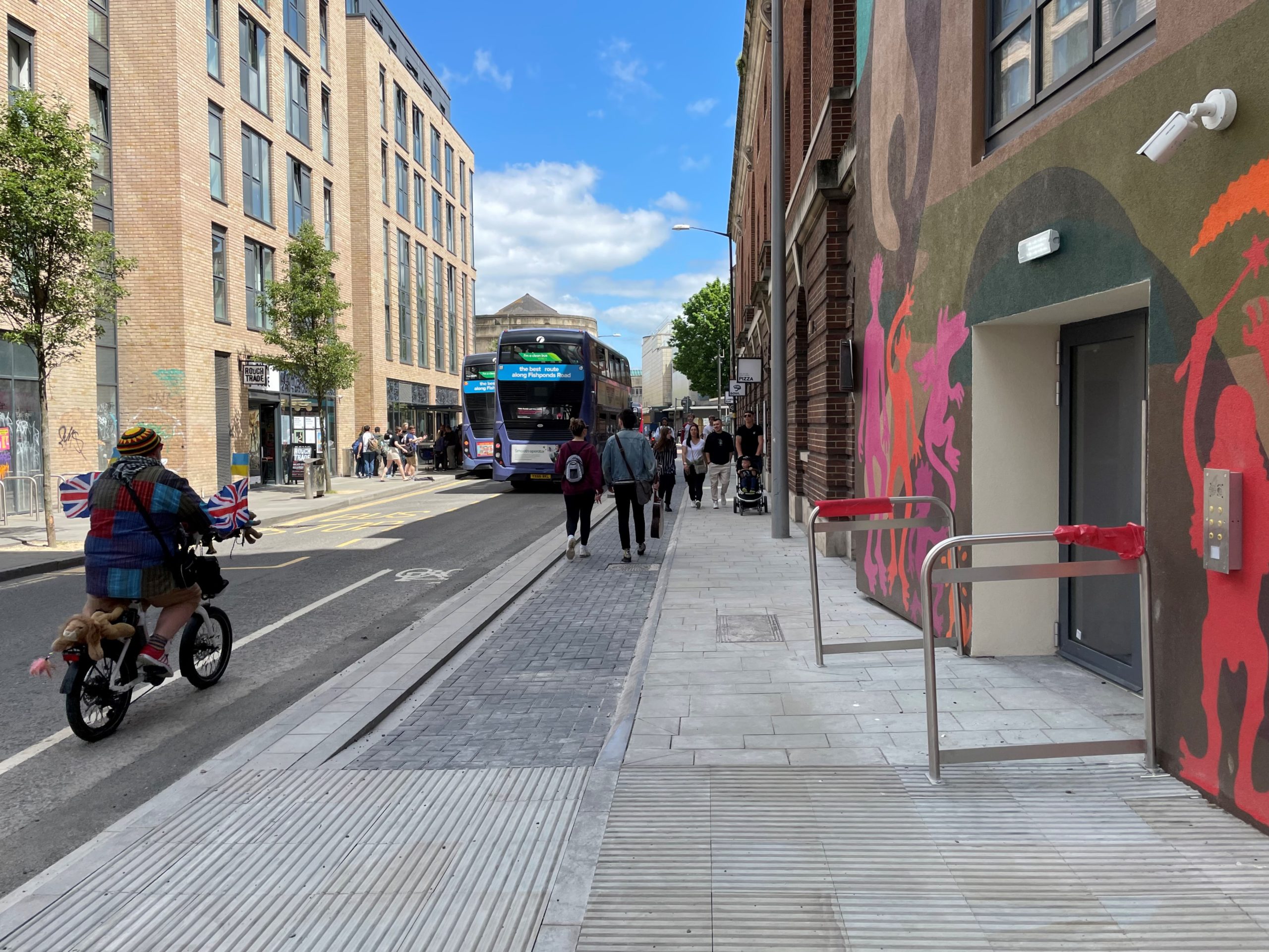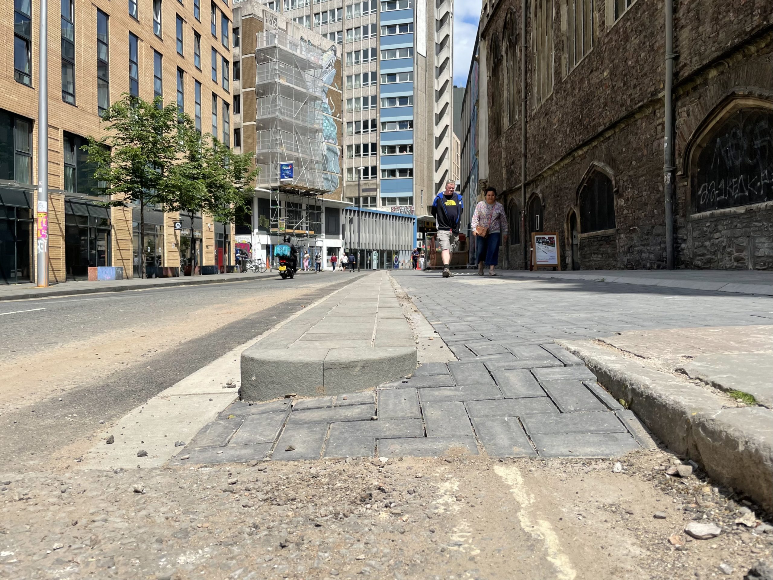 “The tactile paving at the start/end of the route is the wrong type, which may seem like a minor detail, but that paving is there to help blind or visually impaired people know where they are. With the wrong type, they can’t properly ‘read’ the footpath and find their way.