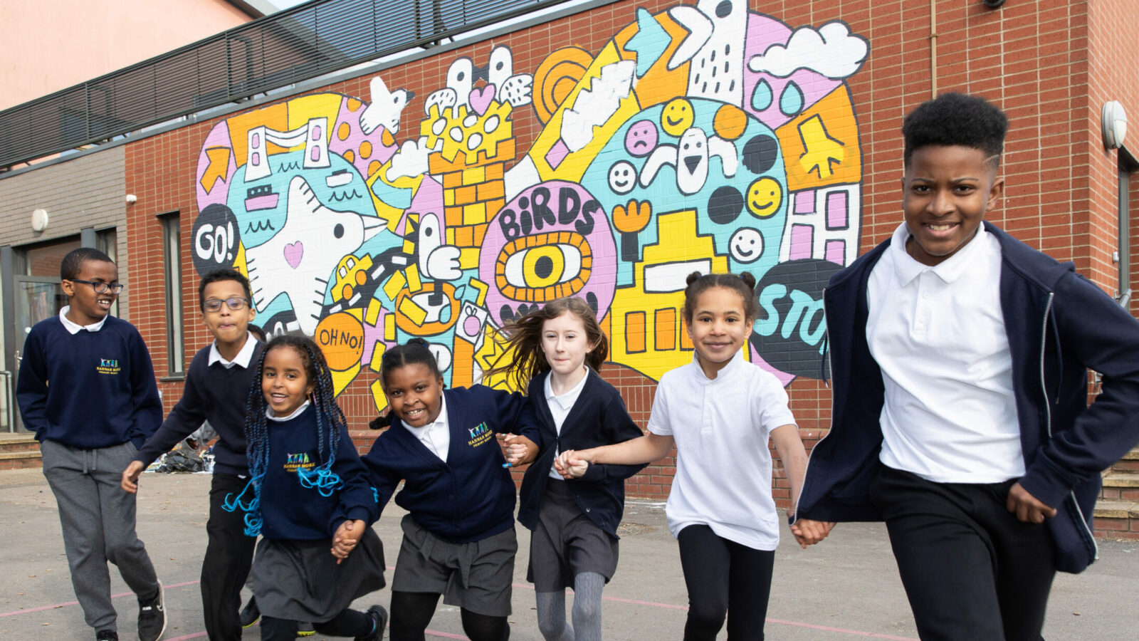 The children’s ideas were brought to life by Bristol-based artist Billy, who helped the children create a vibrant seagull-inspired mural on the school playground walls.