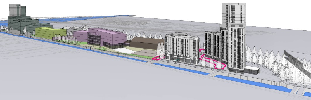 Initial sketches show housing in blocks reaching up to 20 storeys high