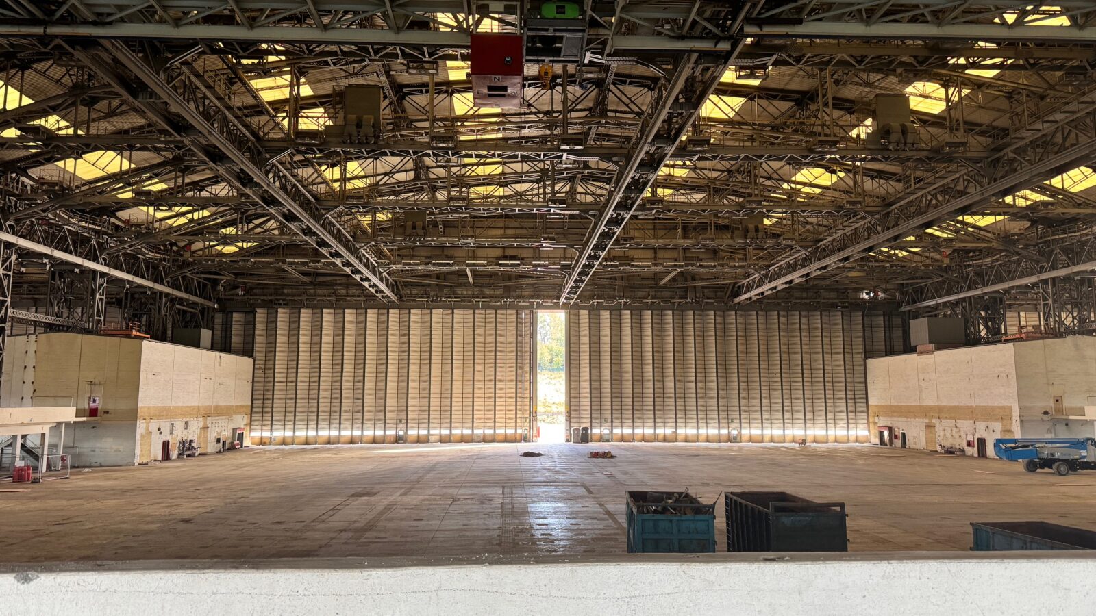 The exterior of the hangar, demonstrates the enormity of the structure – photo: Hannah Massoudi