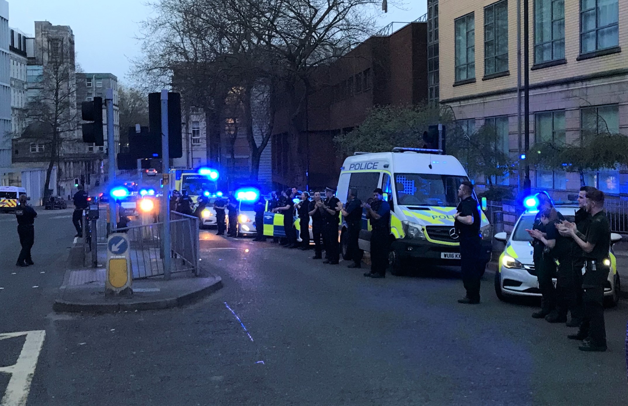 Police officers joined in the clapping from opposite the BRI on Thursday evening – photo by Martin Booth