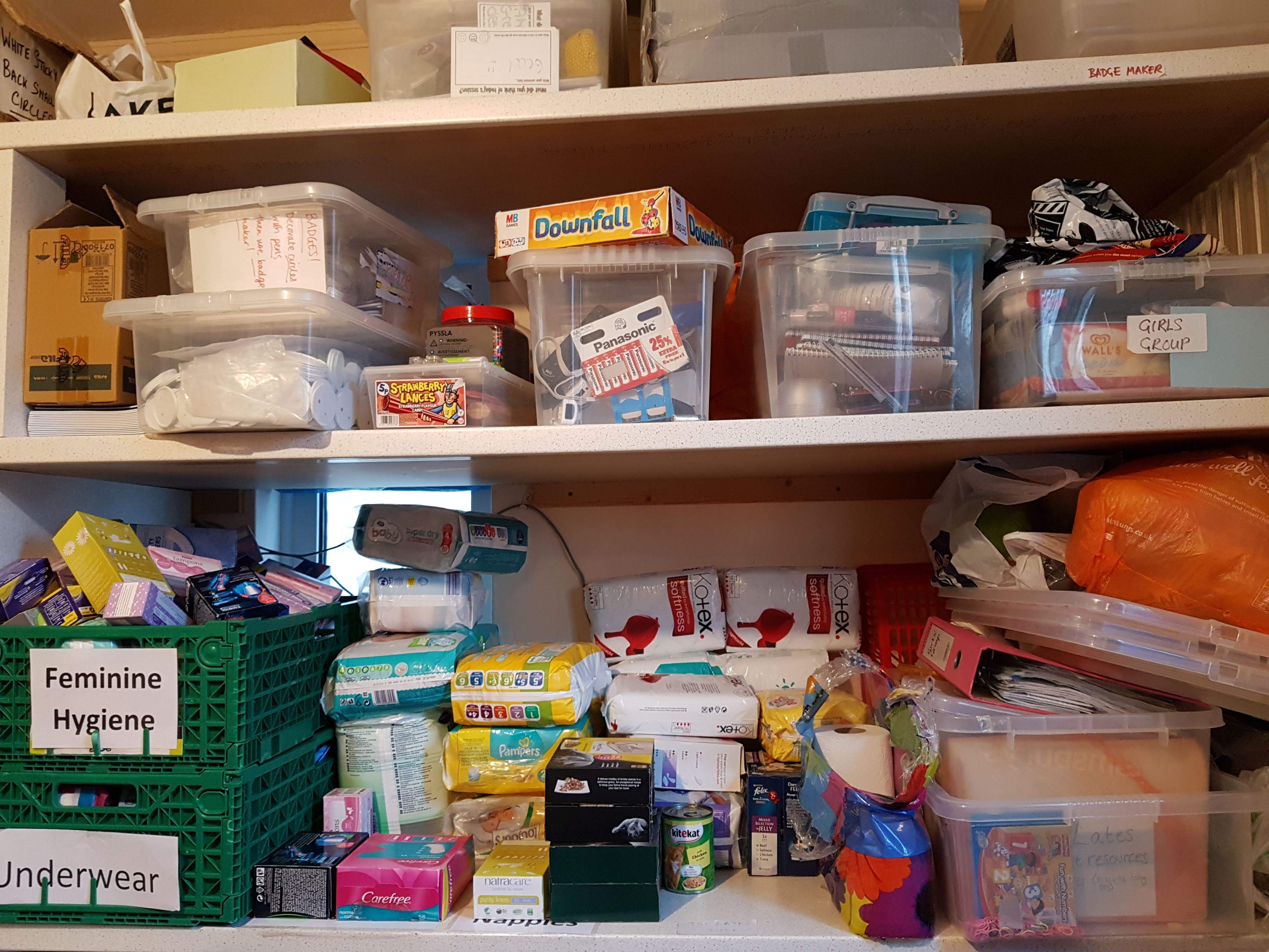 In a small, well-stocked store room by the front door, volunteers Emma Wall and Peter Sellek chat cheerfully as they work their way down lists and efficiently select tins, boxes and essential sundries for each customer.