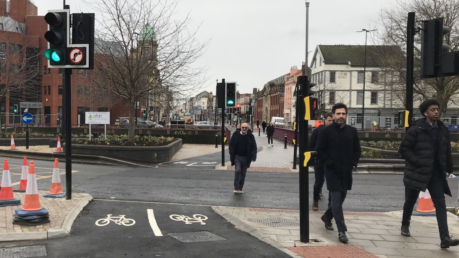 Old Market roundabout reopens with segregated pedestrian and cyclist crossing