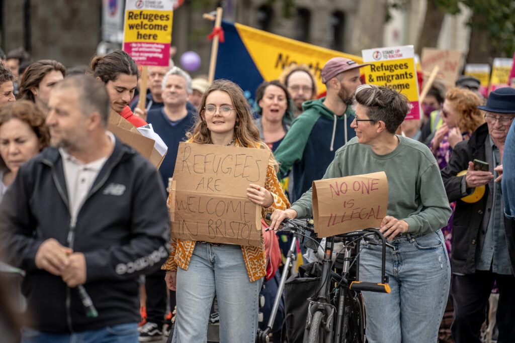 A march from Redcliffe to Wapping Wharf was held on Saturday in response to a recent gathering of people outside a hotel currently closed to the public which only houses asylum seekers.