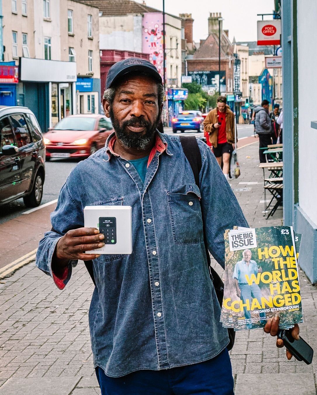 Jeff brings smiles to so many faces as he meanders on Stokes Croft selling magazines – photo: Mitch Bacholer