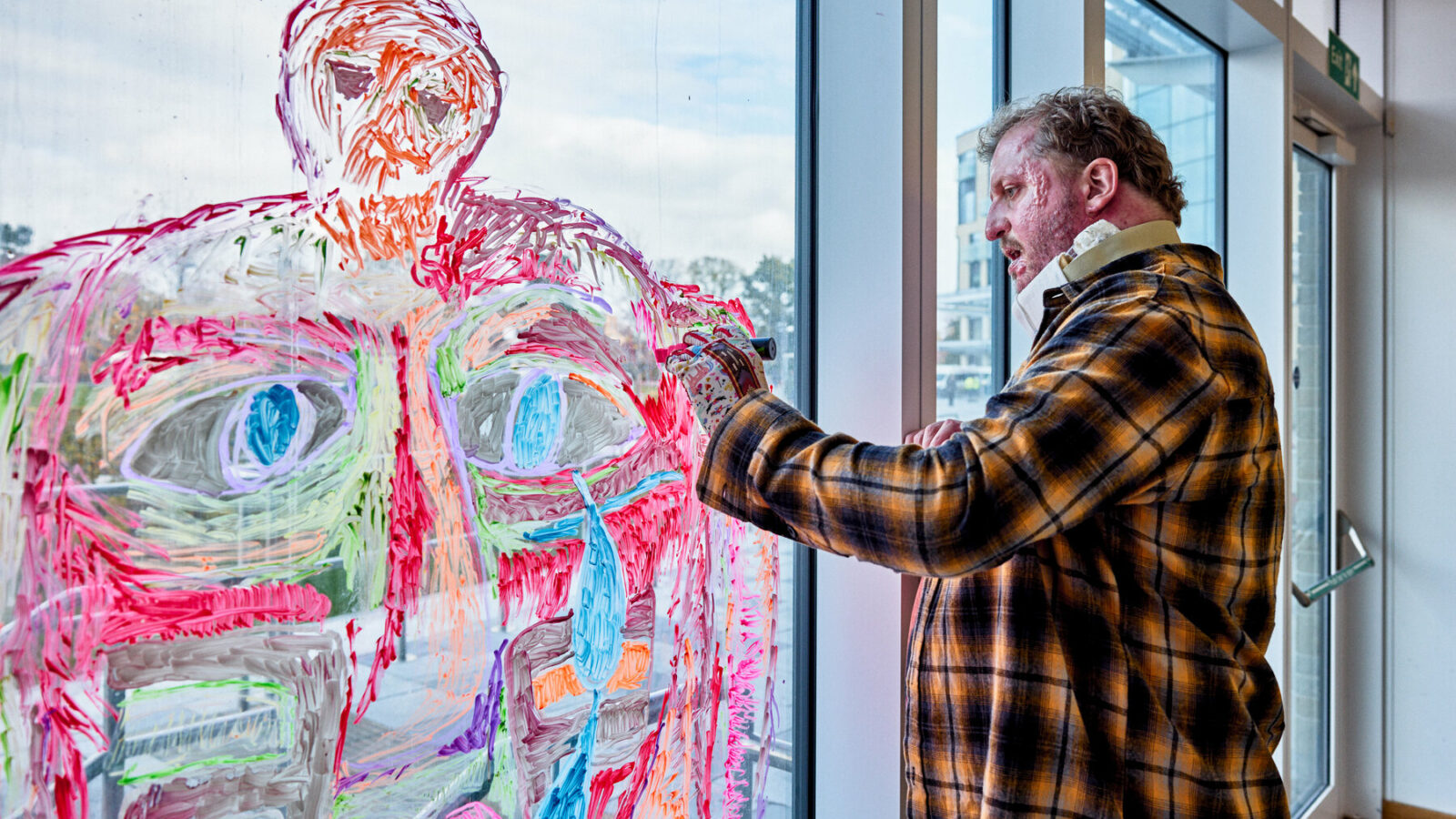 When he was in Southmead Hospital, the artist added a splash of colour to a window when he was commissioned a painting in association with Fresh Arts.