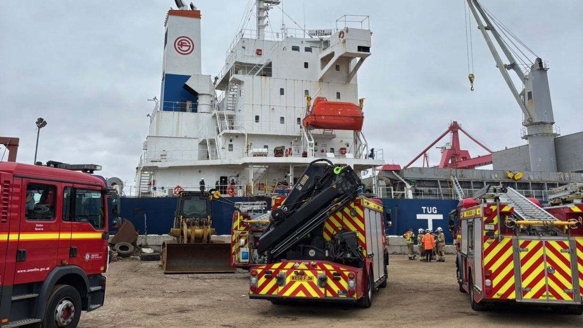 “We were called at 11.47am to a fire on a ship at the Royal Edward Dock in Avonmouth.