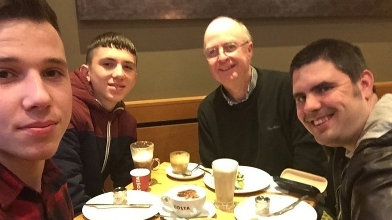 Samet (second from left) with brother Ali and Dave, and foster father John. Photo: John Stokes