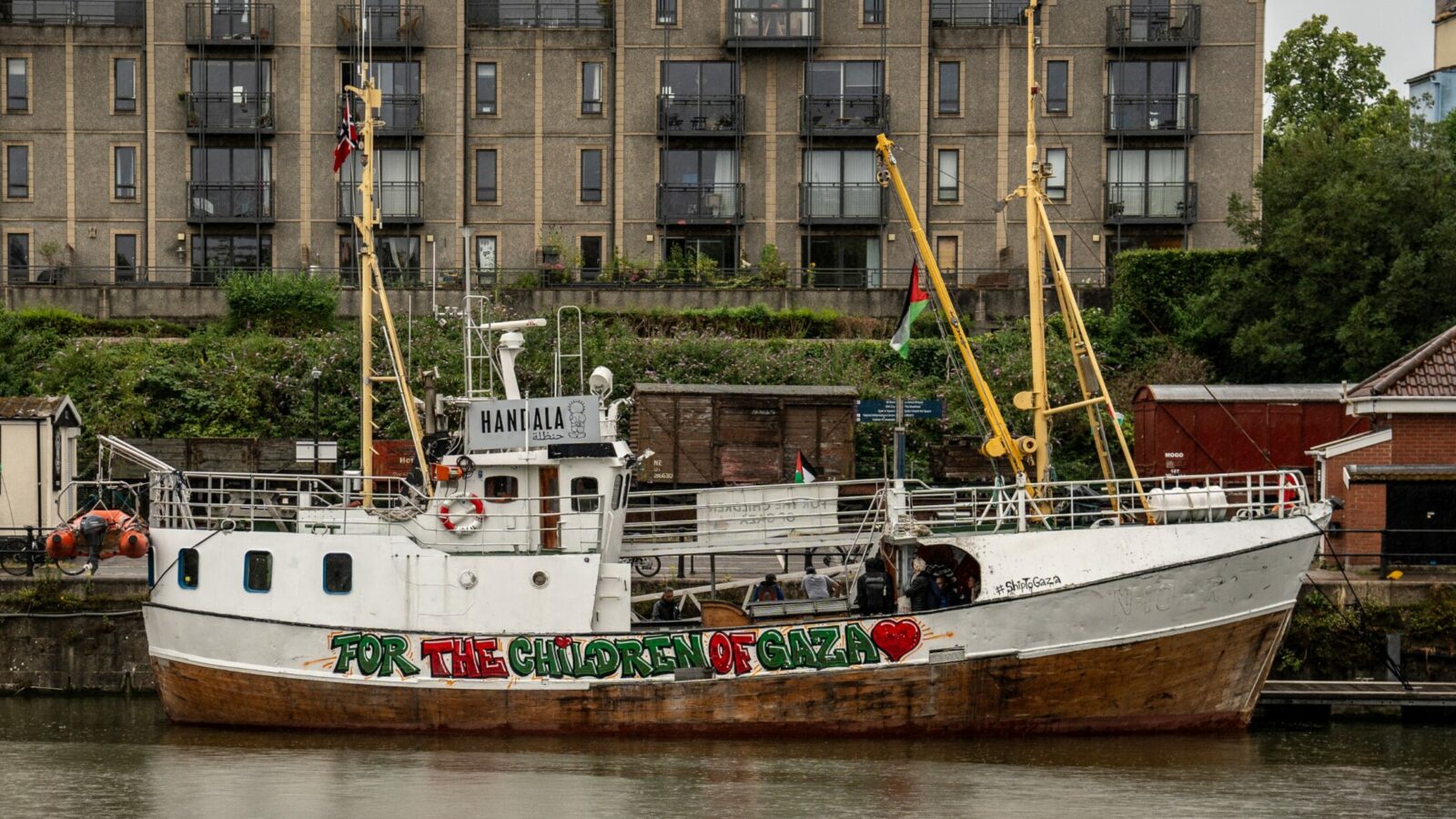 Palestine solidarity boat docks in Bristol Harbour