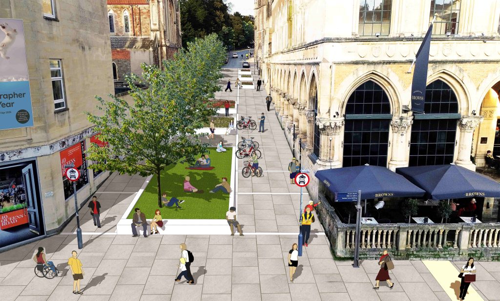Plans also include reducing Queen’s Road to one lane in both directions from Whiteladies Road to the Clifton Triangle, widening the pavements on Park Street and creating a large area of public space in front of the Victoria Rooms.