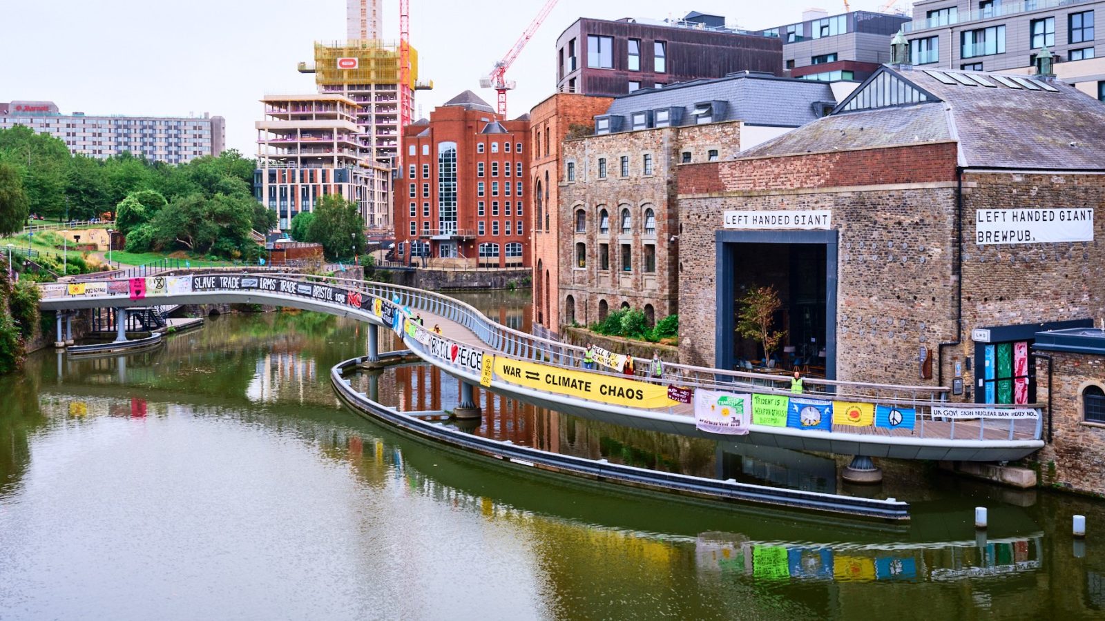 A range of anti-nuclear, anti-arms-industry, anti-militarism, environmental and peace banners were arranged along Castle Bridge in what campaigners claim was Bristol’s longest ever banner drop.