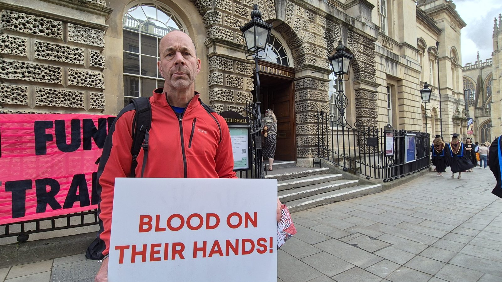 A demonstration was also held outside Bath Guildhall, before the meeting.