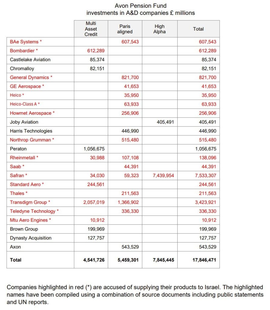 The Avon Pension Fund is facing growing public pressure to divest millions of pounds from companies which make weapons used by Israel in its war on Gaza.