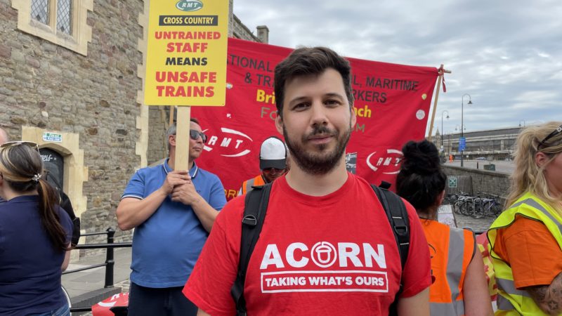 John Hardy, from Acorn, joined the picket line to stand with RMT members.