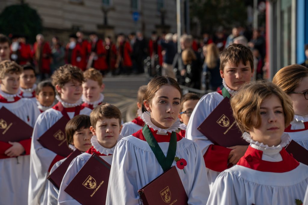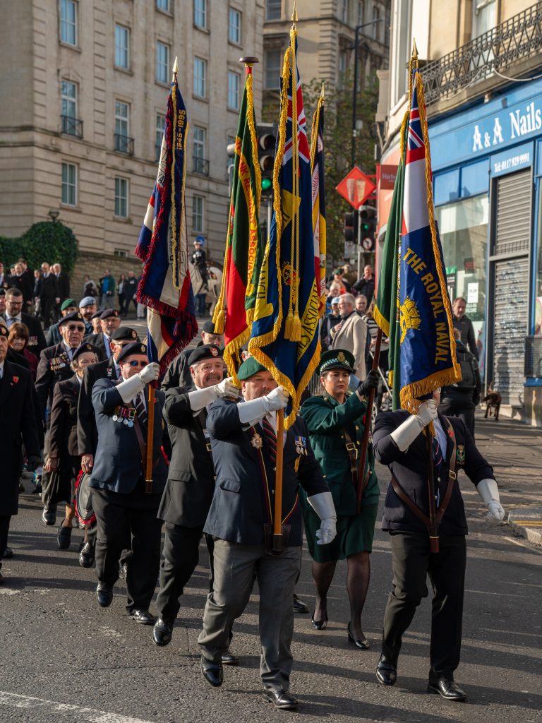 The crowds faced in towards the Cenotaph on Colston Avenue, gathering from 10:30am to witness the various military units, cadet contingents, the Bristol arms of the Scouts and veterans march into the centre.