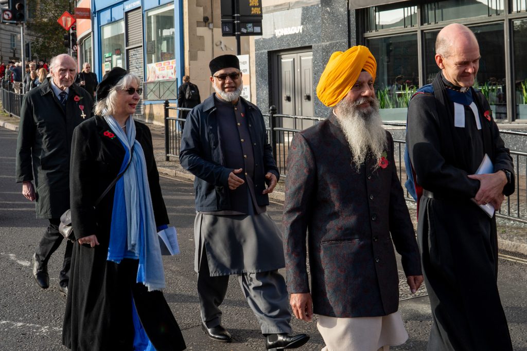 As the service began, a two-minute silence was observed before proceeding into prayer. The religious figures who took it in turn to speak all made reference to the fallen of past world wars and conflicts.