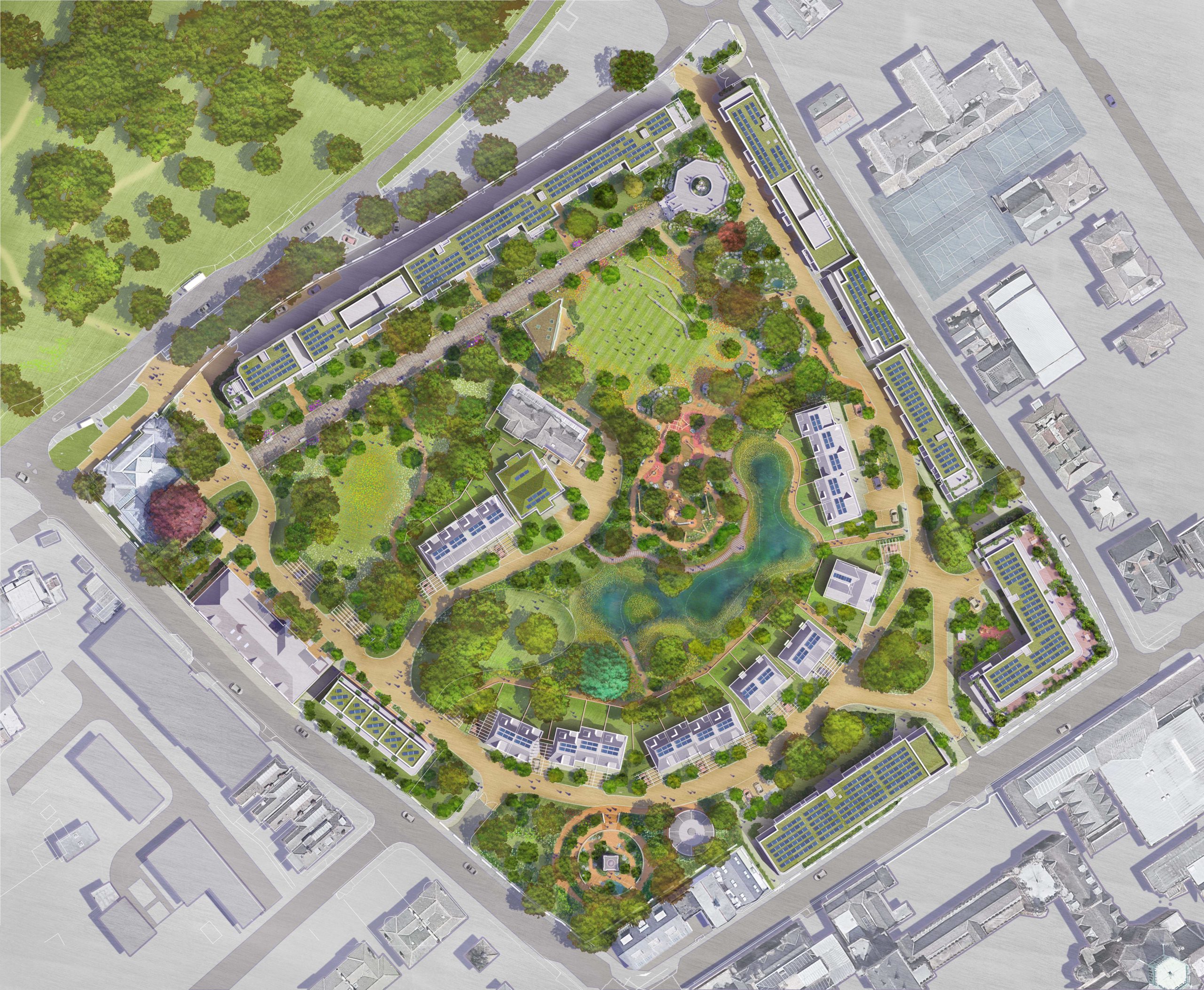 As part of the proposal, the 12-acre grounds will remain open to the public with the creation of a large public park. The plans also include improvements to the lake, a play area, space for community events, café and exhibition space.