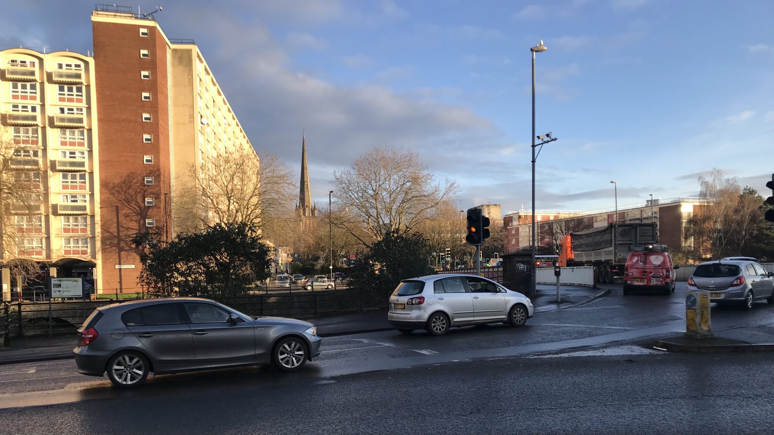 The m2 regularly got stuck in traffic on the approach to the Bedminster Bridge roundabout (pictured from Coronation Road) -photo by Martin Booth