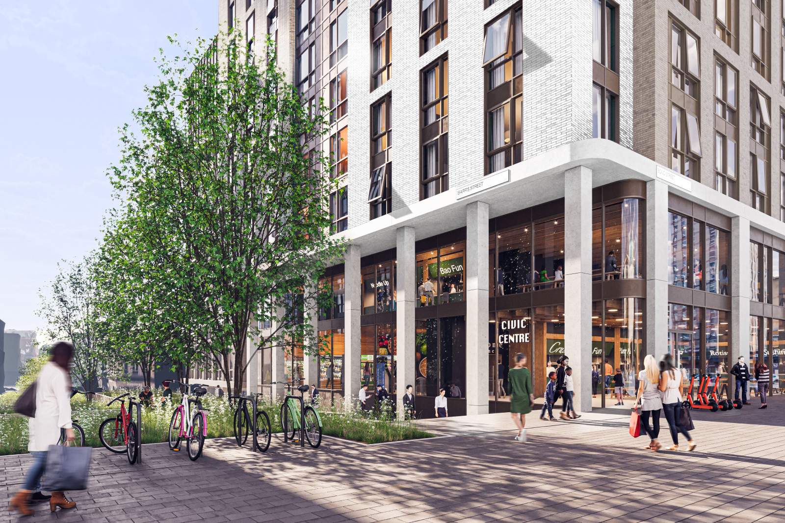 On either side of the reinstated Barr Street, there would be buildings between 9 and 12 storeys, with the upper storeys set back, mimicking the Primark building.
