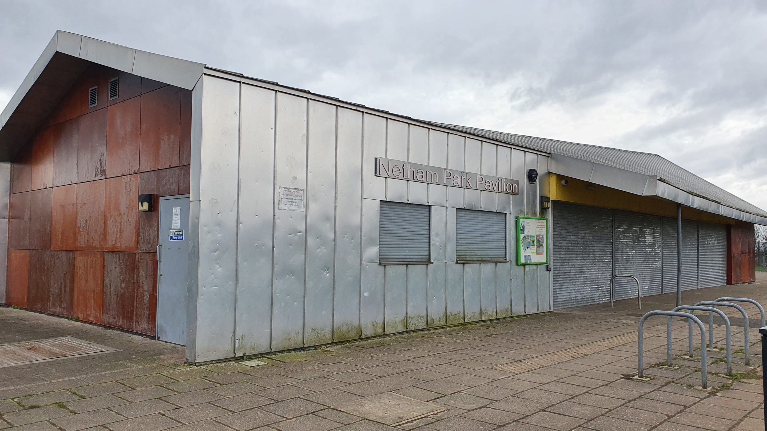 The shutters are currently down on Netham Park Pavilion – photo by Ellie Pipe