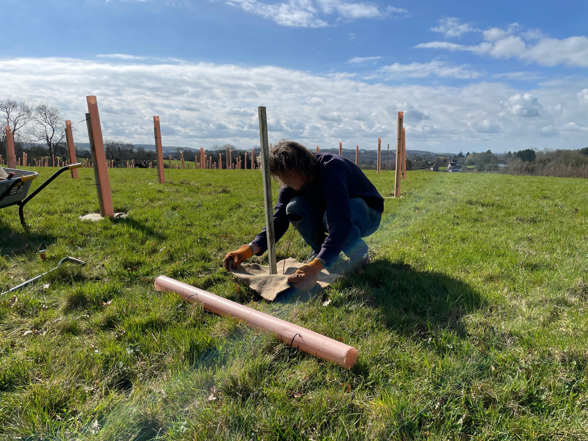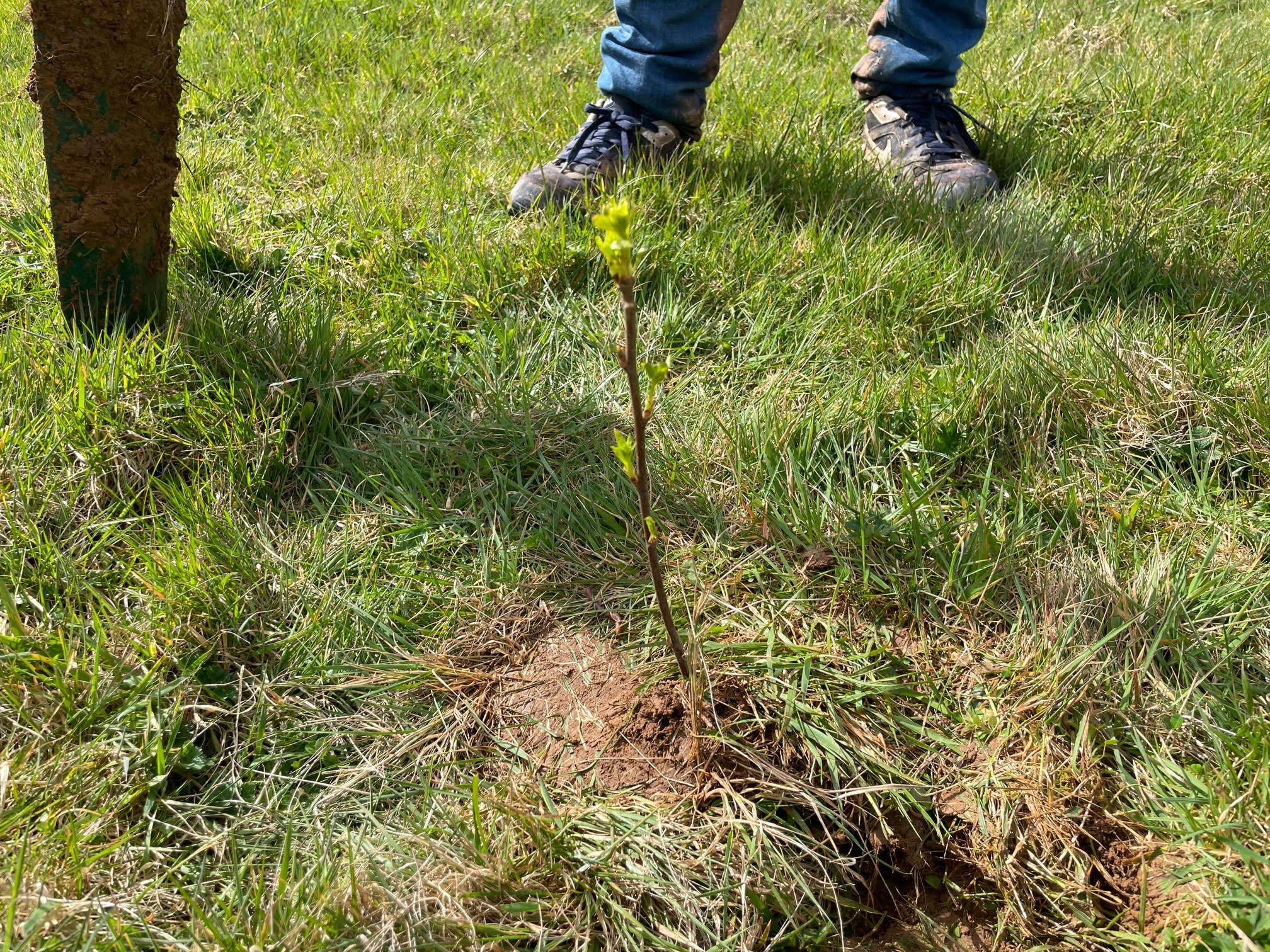 We used the ‘T hole’ method which is a quick and efficient way of embedding the young trees in the soil.