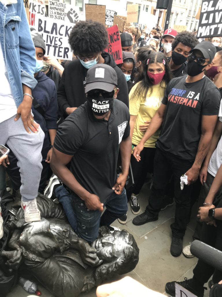 ‘On June 7, 2020, the statue was pulled down during Black Lives Matter protests and rolled into the harbour.