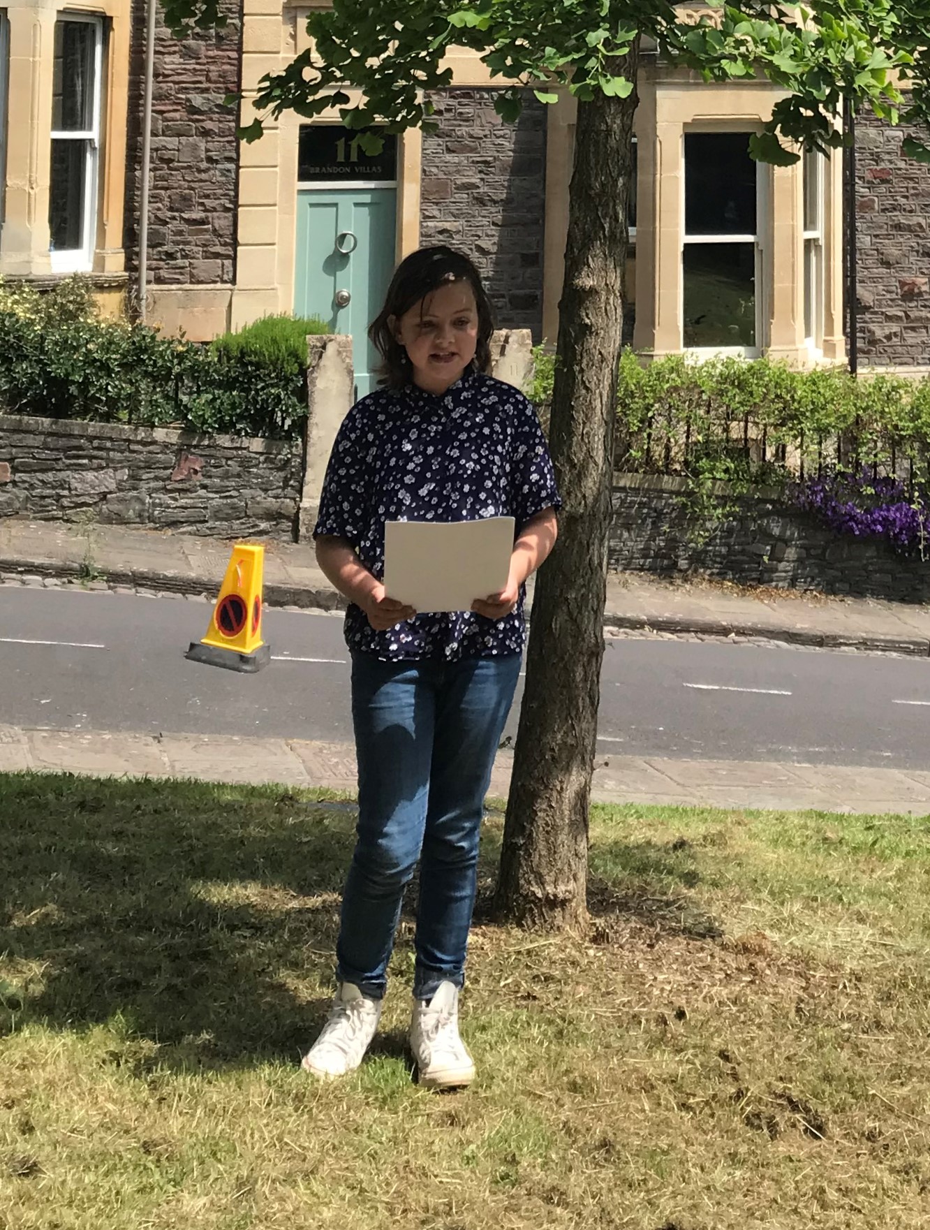 Nine-year-old Elinor Rose Beard speaking at the unveiling of the new plaque – photo: Martin Booth