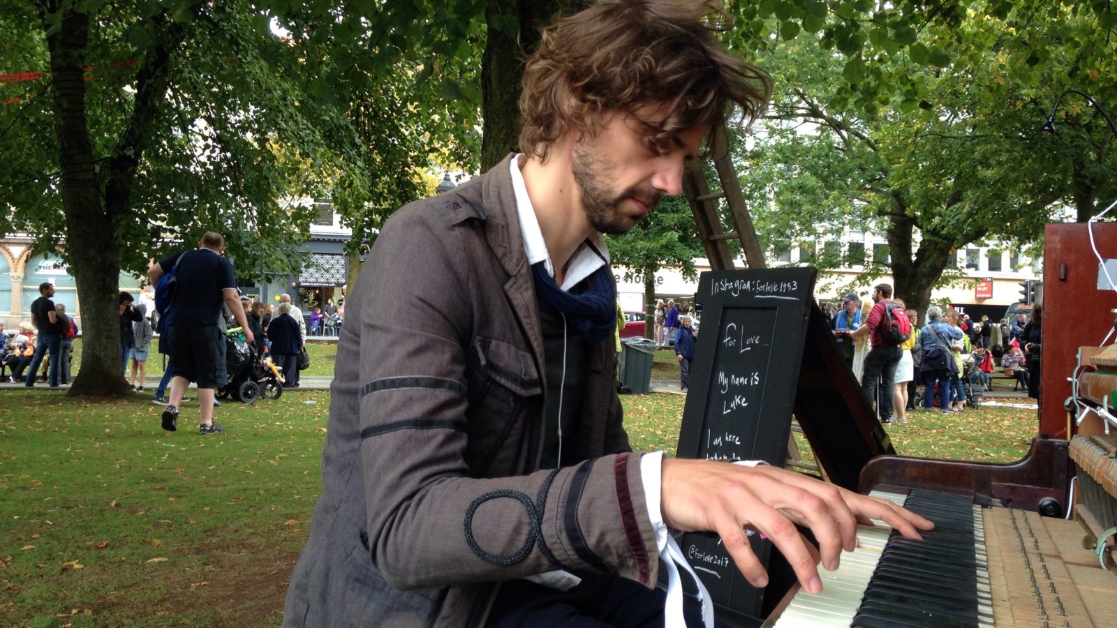Bristol has been used to seeing pianos on the streets for the last few weeks as part of the Play Me, I’m Yours project, and several people had a play of Luke’s piano’s keys as he spoke about his ambitions, assuming that the instrument was public property.