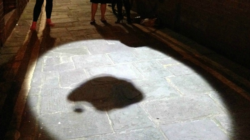 Along Leonard Lane, under a street light near the bridge over this medieval alleyway, shadows have come out to play.