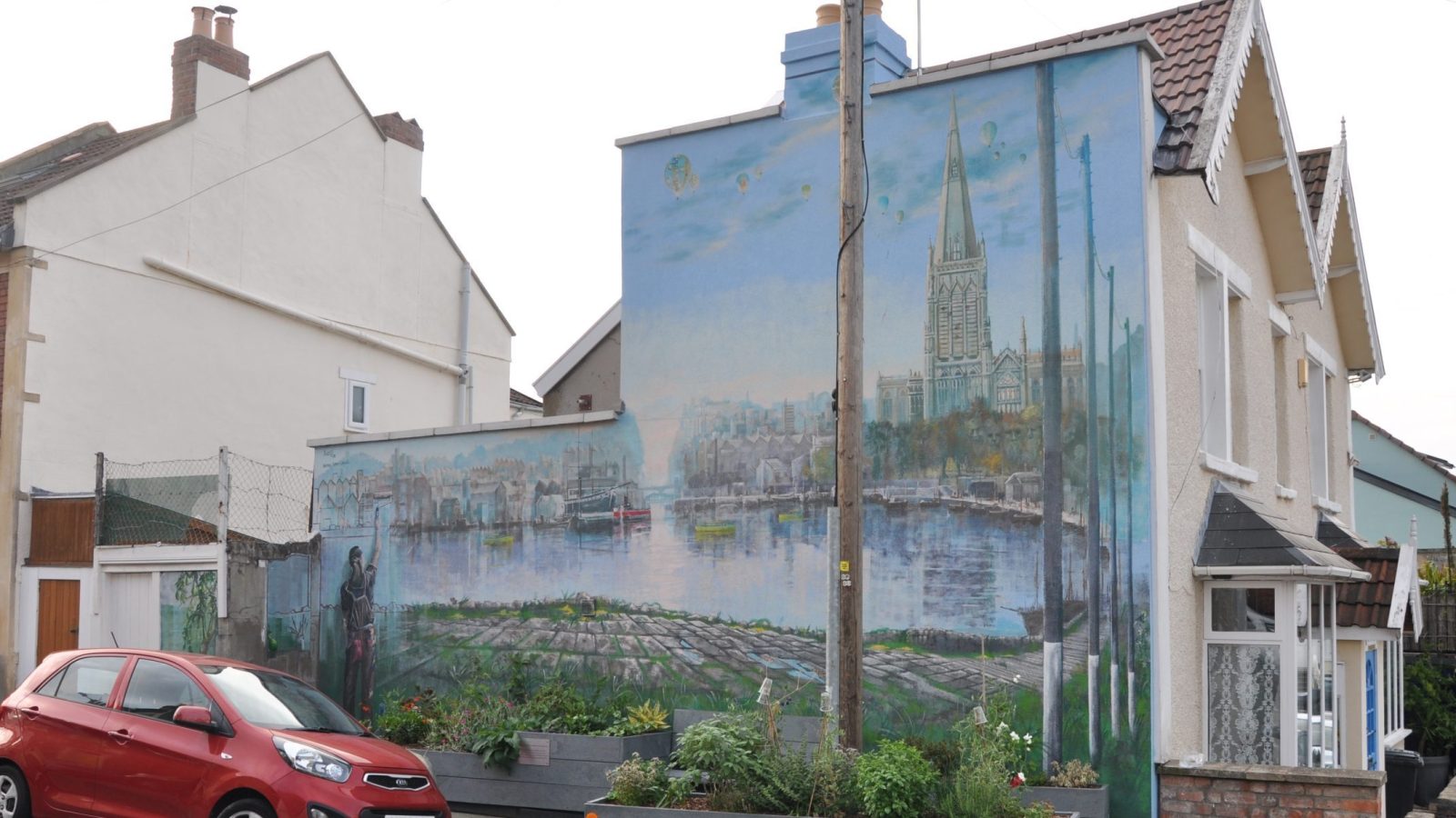 The mural took 60 hours to complete and includes various famous landmarks of Bristol like the Clifton Suspension Bridge, hot air balloons designed by residents, and even one neighbour’s hamster.